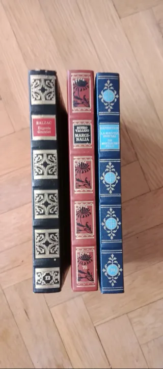 Tres colecciones de libros.