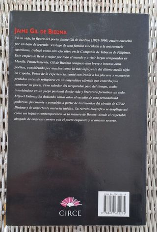 "Jaime Gil de Biedma. Retrato de un poeta", Miguel Dalmau. Circe Ediciones, colección Biografía, Barcelona, 2004. Tapa blanda, 510 pgs. Ya en vida, la figura de Gil de Biedma estuvo envuelta por un halo de leyenda. Vástago de una familia vinculada a la aristocracia castellana, trabajó como alto ejecutivo en la Compañía de Tabacos de Filipinas. Este empleo le permitió viajar por todo el mundo y a vivir largas temporadas en Manila. Paralelamente, Gil de Biedma compuso una breve e intensa obra poética, considerada por muchos como la más influyente del último medio siglo en España. homosexualidad biografía literatura poesía regalo