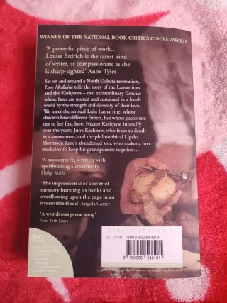 Novela Love Medicine de Louise Erdrich. Una de las lecturas obligatorias en la asignatura optativa Literaturas Poscoloniales en Lengua Inglesa I del grado en Estudios Ingleses UNED. En un estado impecable y comprado el año pasado en Amazon.