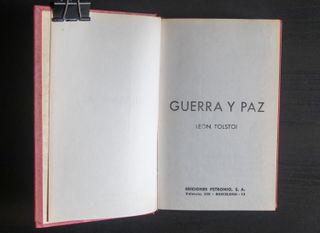 Libro “Guerra y Paz” de León Tolstói, versión de J. Ribera, publicado por Ediciones Petronio S.A. en 1971. Ejemplar en tapa dura, con señales del paso del tiempo: amarilleo del papel y algunas manchas, propias de la antigüedad (ver fotos). Datos editoriales: Depósito legal: B. 38260-71 Clásico imprescindible de la literatura universal. Ideal para lectores, coleccionistas de ediciones antiguas o amantes de los clásicos rusos. El libro es completamente legible.