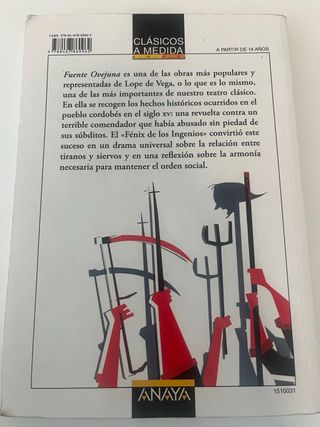 Libro lectura teatro clasico Lope de Vega , “ Fuente Ovejuna”