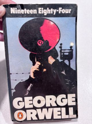 Esta es una edición clásica de la novela distópica "1984" (titulada originalmente Nineteen Eighty-Four) del autor británico George Orwell. La portada que aparece en la imagen corresponde a una versión publicada por la editorial Penguin Books, específicamente de su serie Modern Classics lanzada originalmente en la década de los 70. Esta obra es fundamental en la literatura del siglo XX, ya que introdujo conceptos que hoy son parte del lenguaje común, como el Gran Hermano, la Policía del Pensamiento y el término orwelliano.