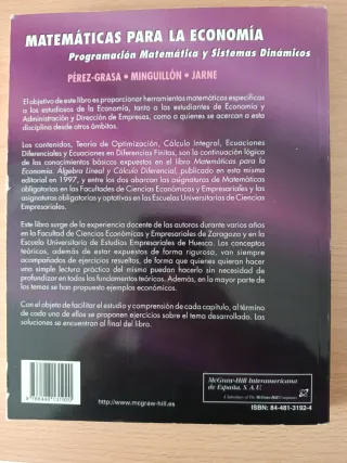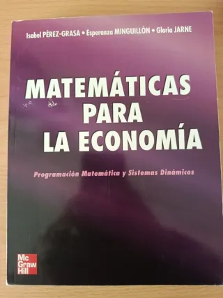 Título: 📘 Matemáticas para la Economía – Programación Matemática y Sistemas Dinámicos (McGraw-Hill) Descripción: Vendo el libro “Matemáticas para la Economía: Programación Matemática y Sistemas Dinámicos”, editorial McGraw-Hill, un clásico muy utilizado en grados y másteres de Economía, ADE, Empresa y Ciencias Sociales. 📚 Contenido del libro: Optimización Programación matemática Sistemas dinámicos Aplicaciones económicas Enfoque claro y riguroso, pensado para estudiantes universitarios Es un manual muy completo y didáctico, ideal tanto para seguir una asignatura como para repasar o reforzar conceptos matemáticos aplicados a la eco