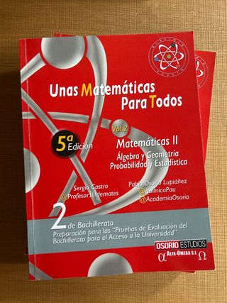 Unas matemáticas para todos, es un documento digital que te ayudara muchisimo en las mates de 2 bach tiene todos los temas, con pasos, ejemplos y trucos, y sobre todo muy util para preparar la sele. cada VOL esta por 5€ LOS DOS POR 10€