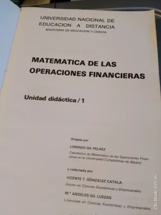 El libro Matemática de las Operaciones Financieras I, escrito por Andrés de Pablo López y editado por la UNED, es el manual de referencia fundamental para los grados de Economía y ADE en esta universidad.