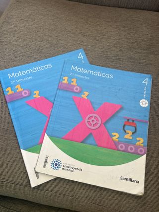 Pack de los tres trimestres de Matemáticas para 4 de Primaria, editorial SM Savia, Comunidad de Madrid. Han sido usados pero no hay nada escrito, ni siquiera a lápiz. En tienda cuesta 47,51 euros, es decir, están prácticamente a mitad de precio.