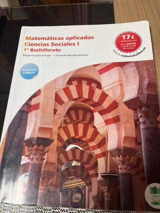 Libro de texto de Matemáticas aplicadas a ciencias sociales de 1 bachillerato. Nuevo a estrenar. Editorial sm Revuela. Si te urge que te lo mande no elijas recibir en casa, elige recoger en un punto de entrega que no sea Correos.
