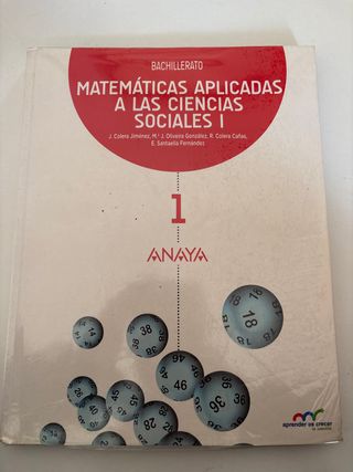 Libro escolar de 1 de bachillerato, en perfecto estado. Matemáticas aplicadas a las ciencias sociales I de Anaya. ISBN: 978-84-143-1114-1 Cualquier duda no dude en preguntar.