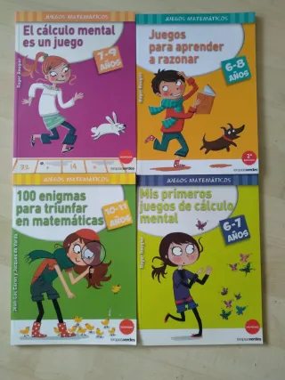 Cuadernos de juegos matemáticos por edades. 4 Títulos Aprender a razonar 6-8 años Cálculo mental 6_7 años Cálculo mental 7_9 años Enigmas 10_12 años Libros nuevos PRECIO POR UNIDAD Descuento por lote, 3 o más unidades