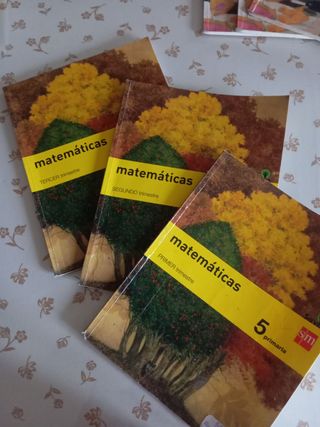Libros de matemáticas de 5° de primaria. De SM. 3 trimestres, en muy buen estado y forrados.