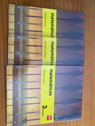 Primer, segundo y tercer trimestre de libros de matemáticas, sin estrenar . El precio de los tres libros es 30€
