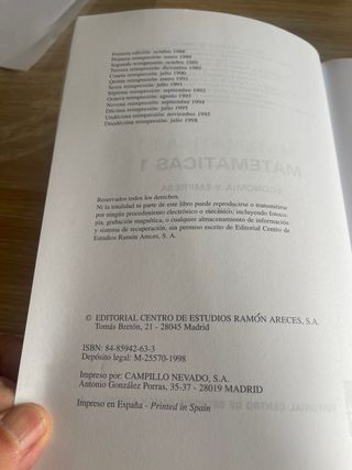 Libro de matemáticas de segundo de la ESO en perfecto estado