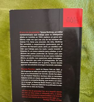 --- Argumento: Europa a finales de la Segunda Guerra Mundial. La historia empieza con el diseño, la producción y el lanzamiento del cohete V-2 por el ejército alemán, y, en particular, la búsqueda de un misterioso aparato.-----Esta es la novela más conocida del prestigiosísimo autor estadounidense THOMAS PYNCHON, el cual ejerce una erudición impresionante en campos tan variados como la química, las matemáticas, la historia, la religión, la música, la literatura o el cine.------------- Premio Nacional del Libro de Ficción, en E.E.U.U., en 1974.------- // 1.150 páginas //
