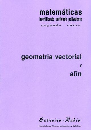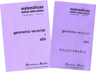 Problemas de Matemáticas. Tapa blanda. Barreiro - Rubio. Geometría vectorial y afín (149 prob). Enunciados 3€, con solucionario 6€. Vectores. Espacio Vectorial. Dependencia e independencia lineal. Bases. El plano afín. Ecuación de la recta. Incidencia y paralelismo. El espacio afín.