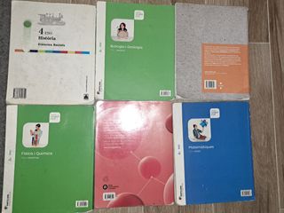 Castellano: 9788466140614. Catalan: 9788441223004. Biologia i geologia: 9788490470336 Física i química: 9788490470404 Historia: 9788430791750 Matemáticas: 9788490470268 . 60 € todos . 12€ por separado . más libros en mi perfil. Colegio. niños . alumnos . libros . instituto.