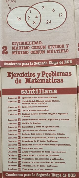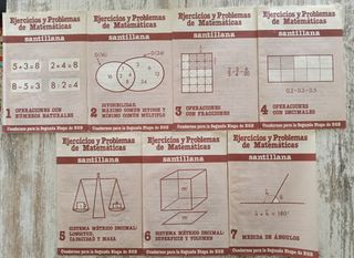 7 Cuadernos Santillana de Ejercicios y Problemas de Matemáticas para la Segunda Etapa de EGB. Publicados en 1984. Hay muchos ejercicios resueltos pero quedan bastantes sin resolver. Es un material muy bien conservado y perfecto para coleccionistas de esta década. Si te interesan publicaciones, cómics y revistas de los 60, 70 y 80, no dudes en visitar mi perfil.