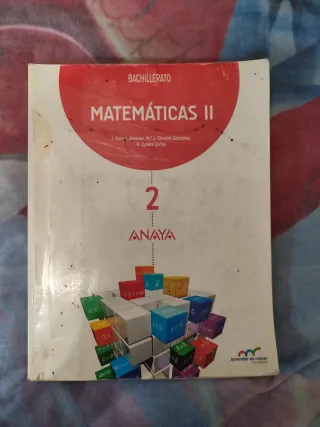 Libro Matemáticas 2 Bachillerato Anaya que incluye los 3 trimestres del curso. ISBN: 978-84-698-1277-8. Solo acepto pago en efectivo.