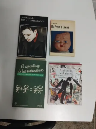 Son libros de diferentes temas: - Anatomía del crimen (Mariano Sánchez): En perfecto estado - De Freud a Lacan (A. Hesnard): En buen estado aunque tiene un nombre en la primera página - El aprendizaje de las matemáticas (Linda Dickson y varios): En muy buen estado - Los atormentados (John Connolly): En buen estado Hago envíos con sobre acolchado. El precio es por cada libro. Oferta: 2€ de descuento si compras otro libro de mi perfil o, si adquieres tres libros, te obsequio con el de menor precio.