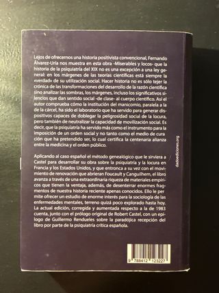Libro Miserables y locos: Medicina mental y orden social. Autor Fernando Álvarez-Uría.