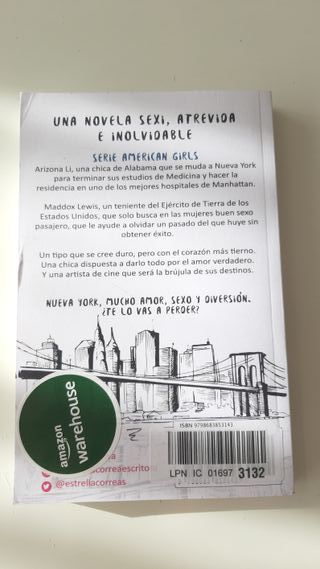 Estrella Correa. 247 páginas. NUEVA YORK, MUCHO AMOR, SEXO Y DIVERSIÓN. ¿TE LO VAS A PERDER? Arizona Li, una chica de Alabama, que se muda a Nueva York para terminar sus estudios de Medicina y hacer la residencia en uno de los mejores hospitales de Manhattan. Maddox Lewis, un teniente del Ejército de Tierra de los Estados Unidos, que solo busca en las mujeres buen sexo pasajero que le ayude a olvidar un pasado del que huye sin obtener éxito. Un tipo que se cree duro, pero con el corazón más tierno. Una chica dispuesta a darlo todo por el amor verdadero. Y una artista de cine que será la brújula de sus destinos.