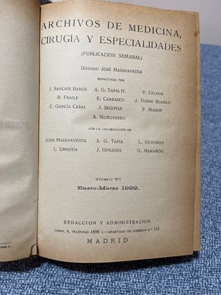 Libro Archivos medicina-cirugia y especialidades. Tomo 1. Año 1922