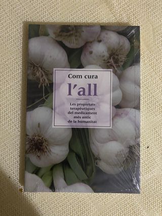 Libro de lectura precintado sin abrir Llibre de lectura sense obrir Com cura l'all Les propietats terapeutiques del medicament mes antic de la humanitat La historia de l'ús medicinal de l'all és gairebé tan anti-ga com la humanitat, ja que forma part del coneixement tradicional de les grans cultures antigues: xinesos, indis, egipcis, grecs i romans coneixien, consumien i utilitza-ven amb èxit aquesta interessant planta olorosa per a la curació i la prevenció de malalties. A diferència d'al-tres plantes, els efectes fisiologics que li atribueix la medicina popular han estat reafirmats posteriorment per estudis científics...