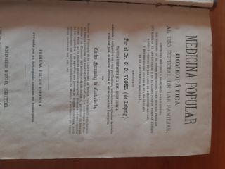 Medicina popular homeopatica al uso especial de las familias Dr.C G Vogel 1 edicion 1876. Entrega en mano