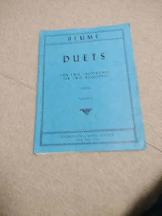 Partitura de Duetos de Blume para dos trombones o dos fagotes. Un clásico para estudiantes. - Título: Duetos - Compositor: Blume - Instrumentación: Para dos trombones (o dos fagotes) - Editorial: International Music Company, New York