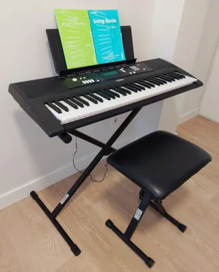 Teclado electrónico Yamaha EZ-220, perfecto para iniciarse en la música. Incluye libro de canciones. En su caja €125 NO NEGOCIABLE - Teclado de 61 teclas sensibles. - Libro de canciones Song Book incluido. - Libro de aprendizaje EZ-220 incluido. Accesorios no incluidos: - Soporte de teclado en X negro, altura regulable - Banqueta negra acolchada Stagg KEB- A10 -Funda teclado TODO €165