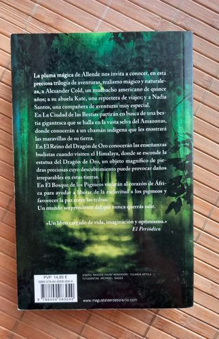 Novela de Isabel Allende. Es una trilogía: la ciudad de las bestias, el reino del Dragón de Oro y el bosque de los pigmeos. Tapa blanda.