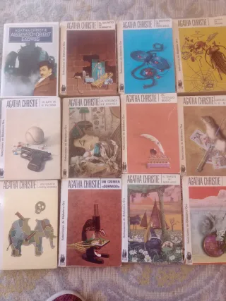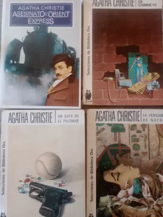 Agatha Christie, la mayoría en ediciones de bolsillo en español de la editorial Molino dentro de la colección Selecciones de Biblioteca Oro. Estas ediciones, con portadas ilustradas, son bastante antiguas, algunas datan de la década de los 70. Entre los títulos que se pueden identificar en la colección se encuentran: Asesinato en el Orient Express y 11 novelas más. Perfecto regalo para coleccionistas 🎁👌🎁