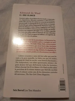 Este libro es una fascinante travesía por la historia de la porcelana, que el autor describe como el "oro blanco". La narrativa de De Waal explora: Temática: La obsesión de emperadores, alquimistas y artesanos europeos por descubrir la receta de la porcelana, un secreto celosamente guardado en China durante siglos. Contenido: El libro detalla cómo la búsqueda de este material llevó a viajes, comercio, explotación y al desarrollo de la cerámica y las artes aplicadas en Occidente.