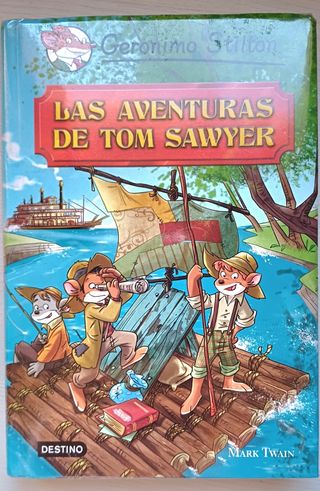 Geronimo Stilton.Las aventuras de Tom Sawyer.editirial destino.Un clásico de la literatura narrado por Geronimo Stilton. LAS AVENTURAS DE TOM SAWYER de Mark Twain. A lo largo de las riberas del Misisipi, Tom Sawyer y su inseparable Huckleberry Finn hacen que cada día sea inolvidable. Juegan a ser piratas, descubren un tesoro escondido y logran ganarle la partida al terrible Joe el Indio. Aunque a veces montan líos, ¡los dos amigos demuestran tener un gran valor y un corazón de oro! pastas duras como nuevo.