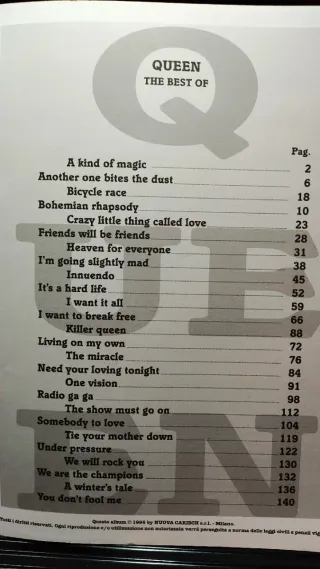 Partituras del legendario grupo Queen, con sus mejores éxitos. - Incluye piano, voz y guitarra. - Ideal para músicos y fans.