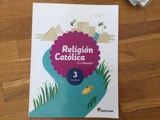 Libro de religion de 3primaria. Esta nuevo. Santillana. ISBN 9788468032658. Solo tiene el nombre en la primera pagina. Esta forrado.