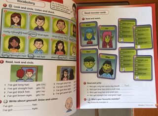 Libro de texto de la asignatura de Inglés de Primero de primaria, Editorial Macmillan Education ISBN 987-1-380-04990-2 Todos los ejercicios estan realizados a lapiz con alguna pequeña correccion a boli o rotulador y algun ejercicio coloreado