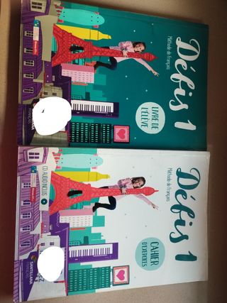 Libro de francés primaria (5° y 6°) Défis 1 más cuaderno de ejercicios (éste lo doy gratis porque está relleno a boli).