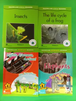 Libros para aprender inglés de la editorial MacMillan. Estos son para nivel 4° de Primaria. Pueden venderse por separado (3€ cada uno) o haciendo lote/pack (hablamos y según cuántos quieras). Están completamente nuevos, son restos del cierre de nuestra librería-papelería. Más libros rebajados de todo tipo en mi perfil. Podemos hacer packs y lotes.