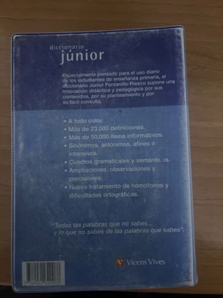 Diccionario esencial para los primeros años de primaria. Está totalmente nuevo, ha estado guardado y no tiene uso. No tiene marcas, ni manchas ni nombres. Una oportunidad para conseguirlo mucho más barato que en tienda.