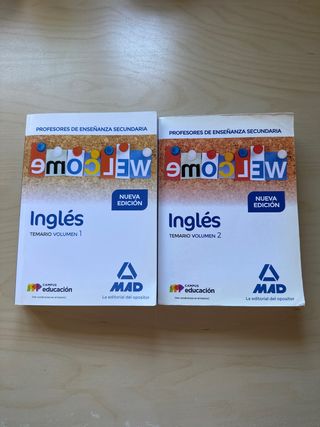 Temario completo para las oposiciones de secundaria de la especialidad de inglés en Madrid. Está dividido en 5 tomos y están sin utilizar. También tengo más material como resúmenes de los temas, unidades didácticas y teoría de la programación. No dudes en preguntarme si te interesa.