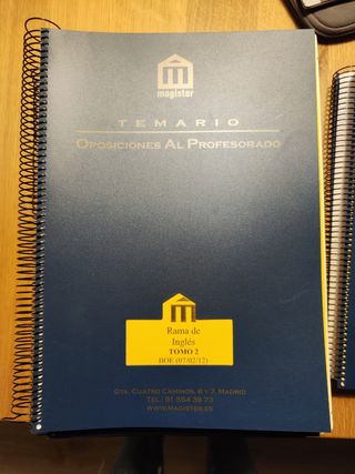Vendo el temario completo de Magister (5 tomos) con todos los temas que entran en las oposiciones de inglés/secundaria. Es el temario que estudié para sacarme la plaza. Precio desde la web 260€.