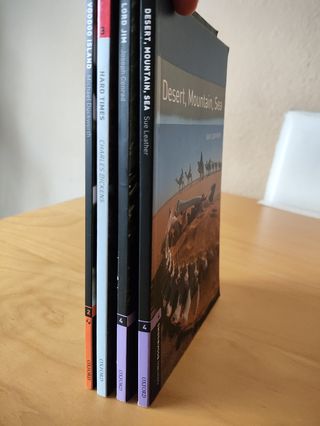 Lecturas obligatorias de Inglés de secundaria. Solo leídos una vez. 1. Voodoo Island (Michael Duckworth) 2. Hard Times (Charles Dickens) 3. Lord Jim (Joseph Conrad) 4. Desert, Mountain, Sea (Sue Leather) Los cuatro libros juntos 10€. Por separado 3€.