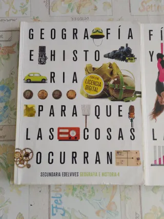 Editorial Secundaria Edelvides - Geografía e Historia ISBN 9788414027011 - Matemáticas ISBN 9788414034903 - Física y Química. ISBN 9788414027172 Libros en perfecto estado, no hay nada escrito, excepto el de Geografía e Historia que algunas páginas hay subrayado a lápiz (es muy poco y solo a lápiz) Precio por unidad 10 euros Todo el lote 20 euros