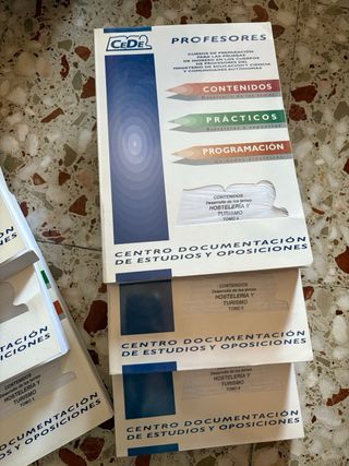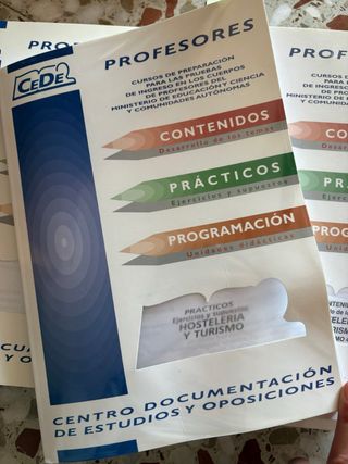 Temario completo de oposiciones de secundaria para la especialidad de Hostelería y Turismo de CEDE del año 2006. También un libro de supuestos prácticos. Hay muchos temas que se pueden utilizar porque son genéricos. Habría que actualizar legislación. Son 6 tomos de contenido y 1 de pracricas. Tienen algunas anotaciones.
