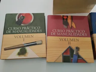 Club Internacional del libro, sin fecha. c. 2000. Tres carpetas archivadoras con dos anillas metálicas y caja archivadora. 27,5 x 23,5 cm. Aproximadamente 900 fichas a doble página conteniendo: Introducción a cada uno de los temas tratados, herramientas, nivel de dificultad, coste, tiempo de elaboración, fotografía resultado, Materiales, Paso a paso, consejos útiles y otras opciones. Papel satinado. Totalmente ilustrado con fotografías en color. Los temas tratados son los siguientes: Tela, Seda, papel, flores secas, pasta de modelar, cerámica, resina, vidrio, materiales diversos, restauración, tapicería y madera.