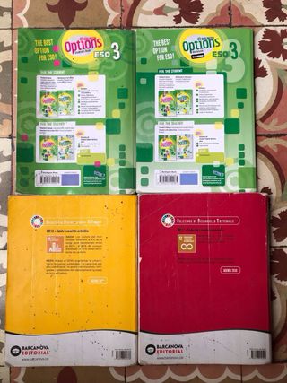 Se pueden comprar juntos o separados. Todos en buen estado aunque ya tengan sus años, el interior esta perfecto. El Workbook de Options tiene pocas paginas escritas en làpiz. Precios por separado: -Llengua catalana. ISBN: 978-84-489-5037-8. 11€ -Lengua castellana. ISBN: 978-84-489-5059-0. 11€ -Burlington Options, studen’t book. ISBN: 978-9925-30-906-1. 11€ -Burlington Options, woorkbook. ISBN: 978-9925-30-908-5. 5€ Todos juntos: 35€