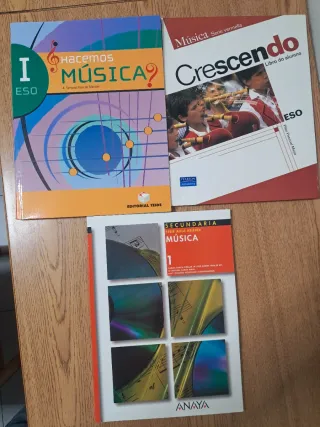 Libros de varias ediciones de la asignatura de música de primero de la ESO Precio unidad.