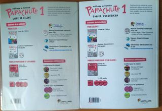 Libros de francés para 1 de la ESO, PARACHUTE. Editorial Santillana. Los libros están resueltos a lápiz, están forrados y se venden los dos por 12€. Hago envíos. ISBN: 978-84-96597-97-6 978-84-96597-99-0