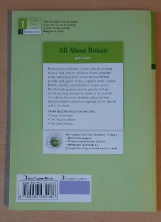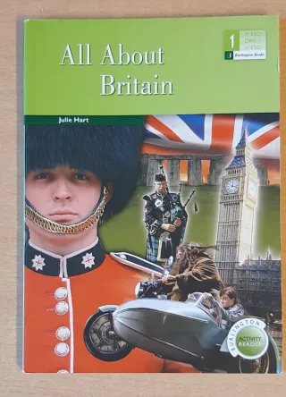 Libro All About Britain de Burlington Books para 1°ESO forrado,muy usado, con maracas de cosas escritas