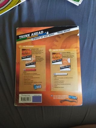 Libro de texto de inglés de 3o ESO, usado. Advanced Think Ahead. Student's Book. Libro del estudiante. Tiene algunas anotaciones en lápiz que se pueden borrar, otras ya borradas. Editorial Burlington Books . ISBN 9789925301126. El estado es tal y como se ve en las fotos. En mi perfil podrás encontrar muchos más libros de quinto y sexto de primaria y de primero y segundo de ESO. Entrega en la parada de metro "Parque Lisboa" en Alcorcón. También envío por WALLAPOP ENVIOS.